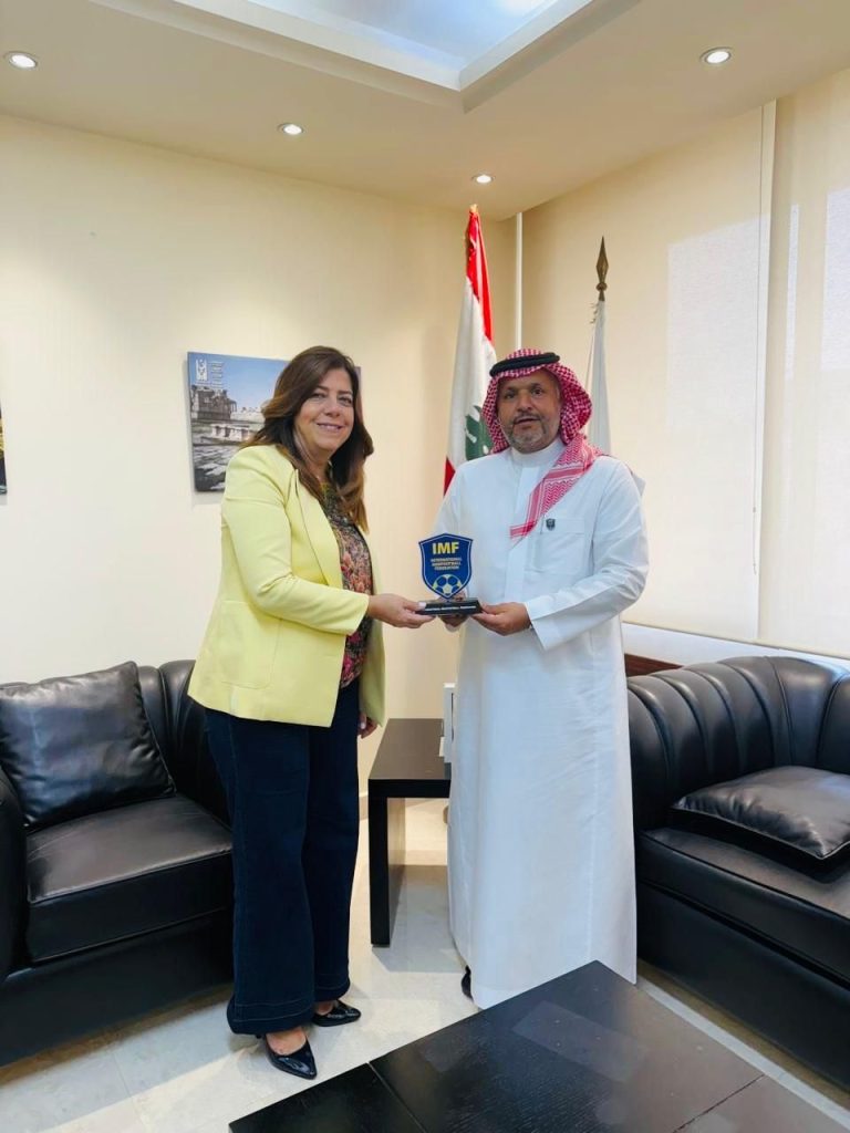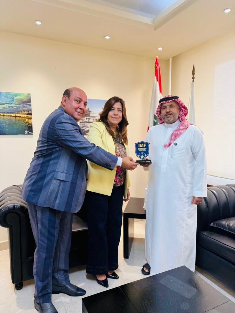The Lebanese Minister of Sports, Dr. Noura Berqadarian, received in her Beirut office the delegation of the International Minifootball Federation (IMF), headed by Dr. Mohammed Al-Dosari, accompanied by the IMF Secretary-General Hussain Al-Asam, Director of International Relations and Vice President of the Asian Minifootball Federation Khaled Al-Hadeed, President of the Lebanese Minifootball Federation Ahmed Danch, and President of the Palestinian Minifootball Federation Hussam Al-Hussein.