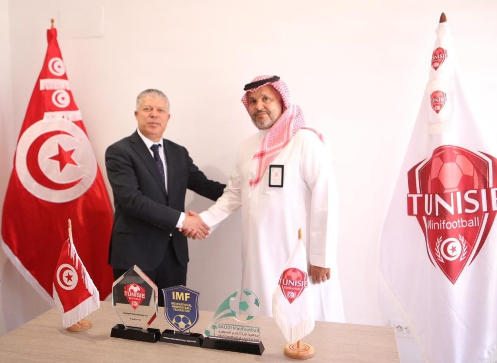 During a visit by an official delegation from the Kingdom of Saudi Arabia, under the supervision of the Ministry of Sports and headed by Dr. Mohammed Al-Dosari, President of the International MiniFootball Federation and Chairman of the Board of Directors of the Saudi MiniFootball Association, the Saudi MiniFootball Association and the Tunisian MiniFootball Federation, headed by Mr. Youssef Ben Al-Hajj, agreed on several important areas of development for MiniFootball. The agreement stipulates the development of referees, the exchange of referees for matches, and the attendance of training courses and workshops between the two parties.