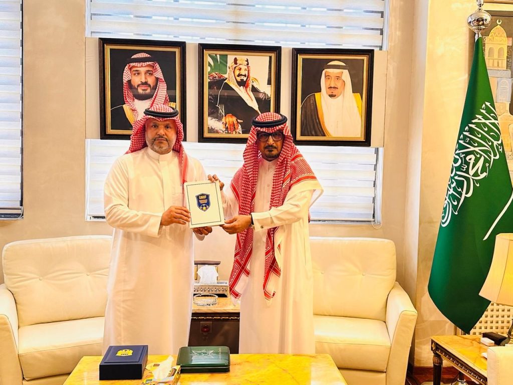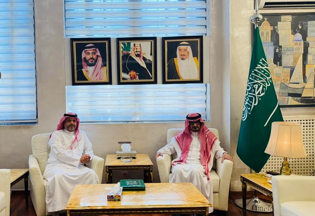 The Ambassador of the Kingdom of Saudi Arabia to Algeria, Dr. Abdullah Al-Busairi, received the President of the International MiniFootball Federation and Chairman of the Board of Directors of the Saudi MiniFootball Association, Dr. Mohammed Al-Dosari.