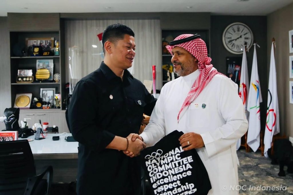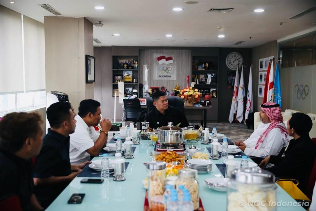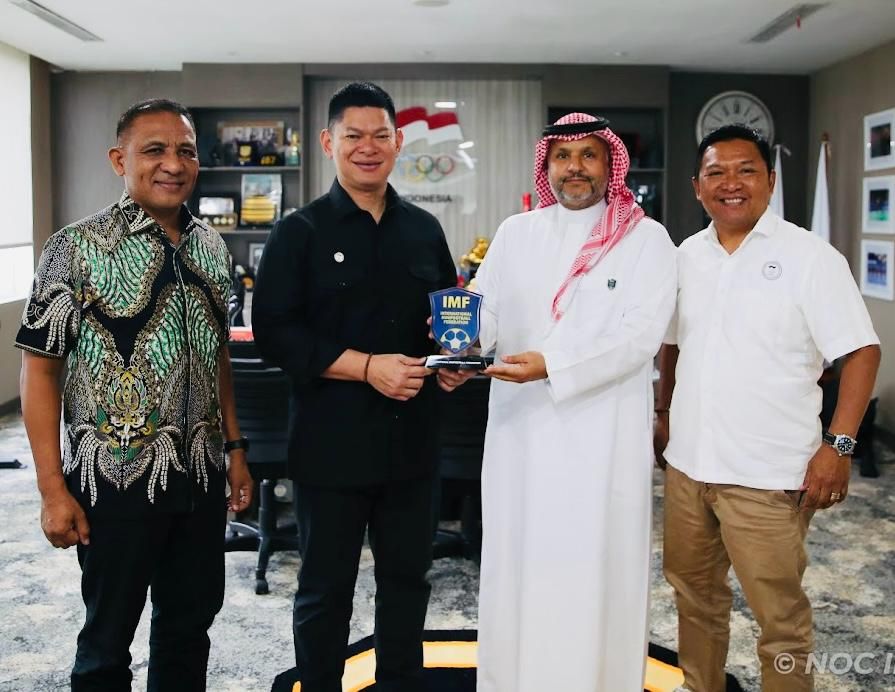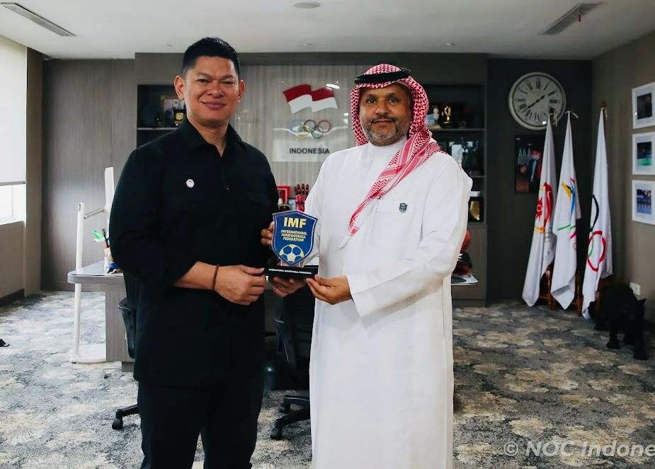 The President of the Indonesian Olympic Committee, Mr. Raja Sepa Akto Hari, and members of the Olympic Committee welcomed Dr. Mohammed Al-Dosari, President of the International MiniFootball Federation, and his accompanying delegation to his private office at the Olympic Committee headquarters. They discussed MiniFootball and its support locally and internationally. The President of the Olympic Committee expressed his happiness with Al-Dosari’s visit to Indonesia and his support for MiniFootball and sports in general. He expressed his willingness to cooperate in everything that serves sports and athletes in Indonesia.